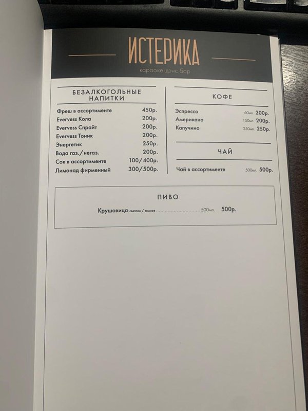 Посещение караоке-клуба ИСТЕРИКА нам понравилось, остались довольны! Мы были не особо привередливы, приходили вдвоем, заказывали чизкейки, которые были вкусные. Сидели в общем караоке-зале, диджеи сами включали песни по заявкам. Мы провели в заведении несколько часов, эмоции остались положительные.